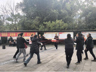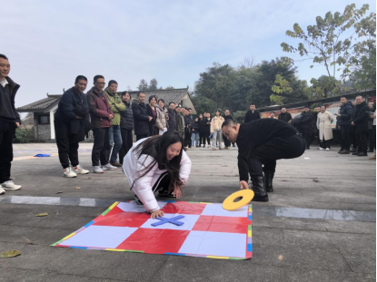 活动现场氛围热烈,充满了欢声笑语。活动精心设置了多个趣味游戏环节,包括一圈到底、袋鼠跳、手脚并用、接力井字棋、同心击鼓和拔河比赛等,旨在通过轻松有趣的方式,增进团队凝聚力和合作精神,同时迎接新年的到来。