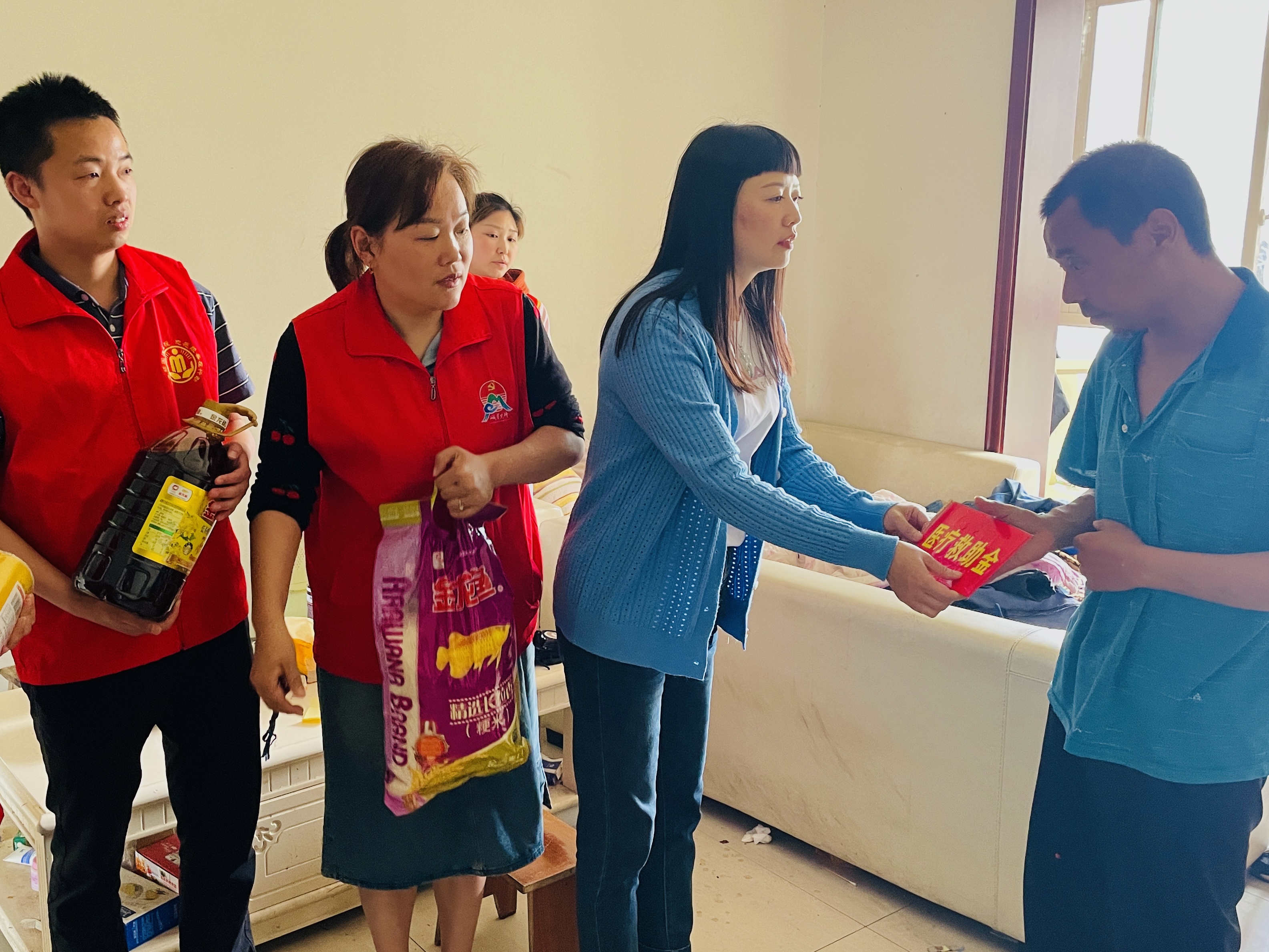 活动中,社区工作人员和商家志愿者队伍根据困难群众的实际需求,针对性地送上了物资帮扶、资金帮扶与医疗帮扶。
