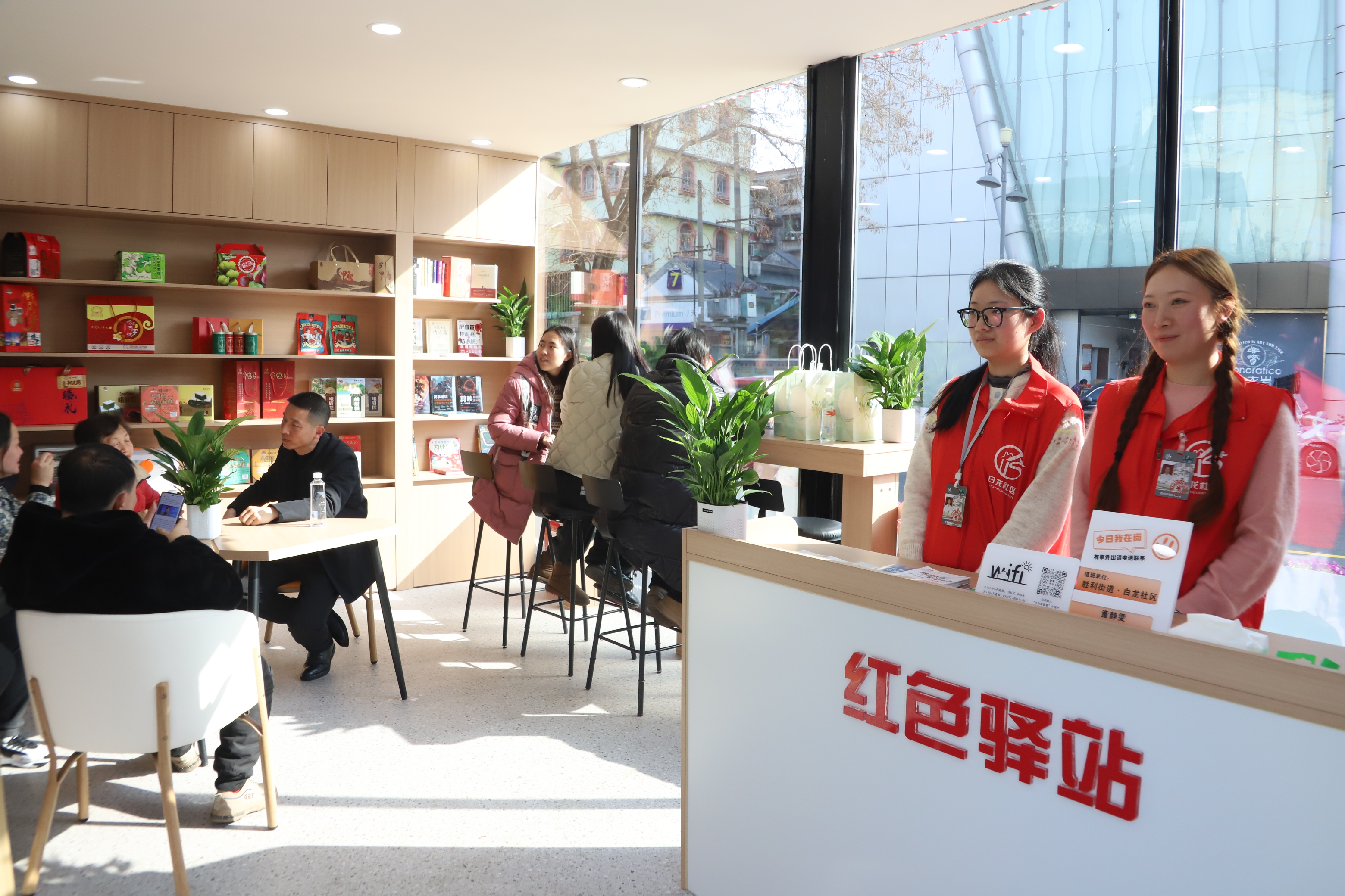 除此之外,驿站创新引入的合伙人模式,吸引了社区热心商家参与,在驿站内提供奶茶、咖啡等轻饮售卖服务,进一步丰富驿站功能、提升运营活力,让红色驿站真正成为“有人气、有温度、有烟火气”的城市暖心角落。