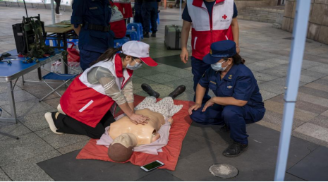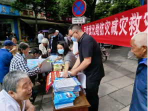 峨眉山市红十字会组织志愿者救援队伍开展“红十字‘救’在身边—5.12防灾减灾日宣传”活动,向群众现场展示应急救援装备,发放防灾减灾宣传资料,普及地震、火灾、洪灾、山体滑坡等避险逃生知识,进行暑期防淹溺宣传,还同志愿者一起在现场进行了心肺复苏、环境消杀等实操演练。